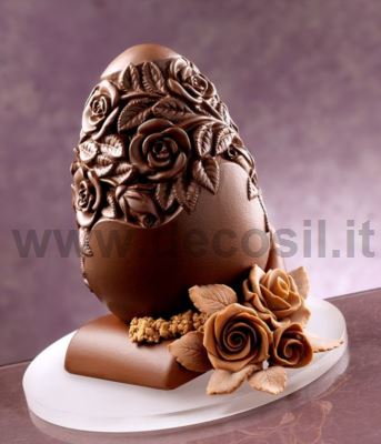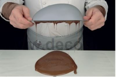 Carefully detach the edges of the silicone mold from the chocolate egg,...
