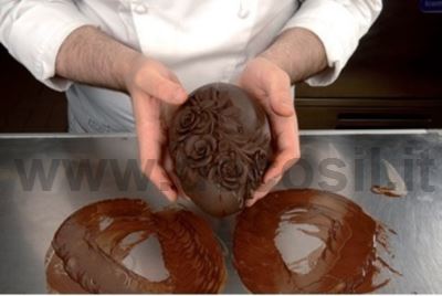 Use a brush or a pastry bag to paint or fill with pre-crystallized chocolate the details of the silicone mold and obtain the subject of various colors.