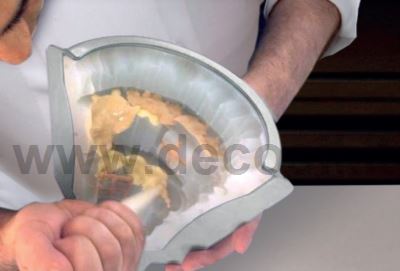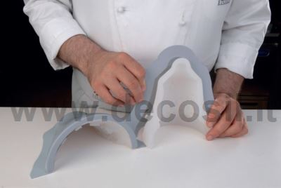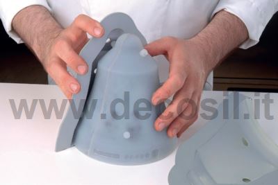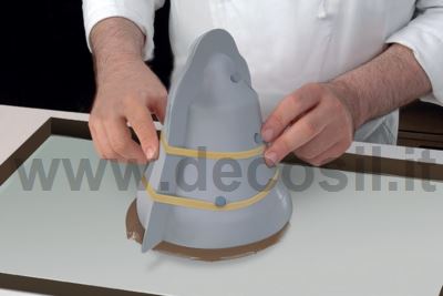 To use the LINEAGUSCIO® silicone molds (Bell, Pine, Sphere, Egg) it is necessary to combine the thermoformed mold item, consisting of two rigid parts needed to sustain the silicone shells.